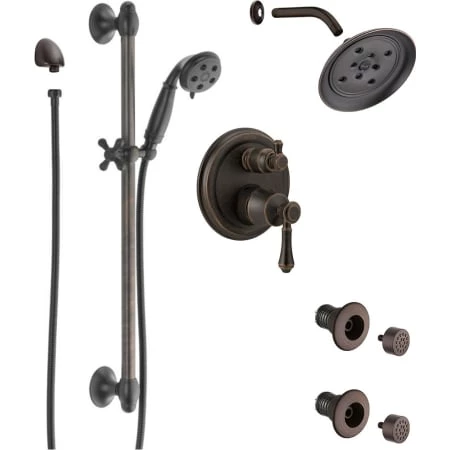 - Shower Package Includes: shower head, rough in, diverter, hand shower, slide bar, bodysprays, hose, wall supply, and valve trim