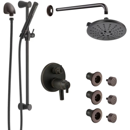 - Shower Package Includes: shower head, rough in, diverter, hand shower, slide bar, bodysprays, hose, wall supply, and valve trim